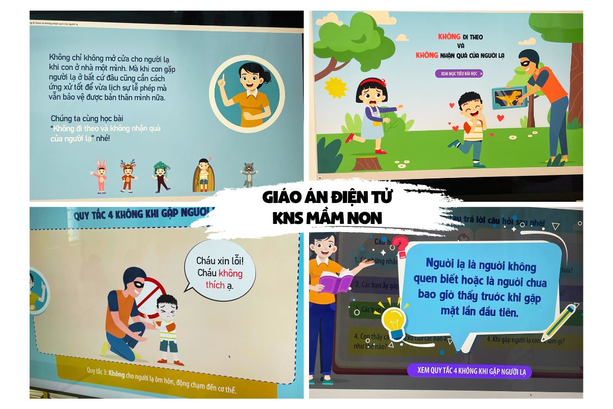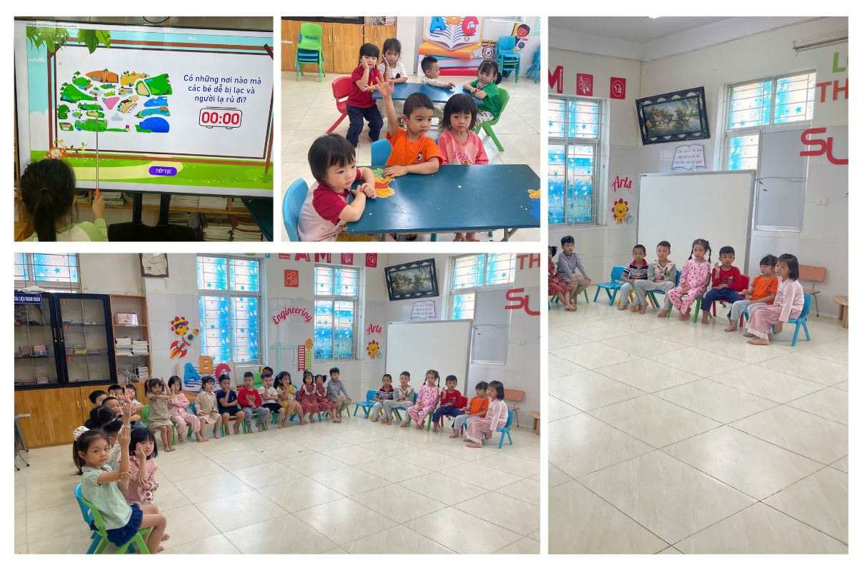 Trong tiết học, trẻ được đóng vai và xử lý các tình huống thực tế, chẳng hạn như khi người lạ mang quà đến mời hoặc tự xưng là bạn của bố mẹ. Cô hướng dẫn trẻ sử dụng câu từ chối lịch sự như: “Cháu cảm ơn, nhưng cháu không nhận ạ.” Nhờ đó, trẻ trở nên tự tin hơn, biết giữ khoảng cách và đưa ra lựa chọn an toàn trong các tình huống bất ngờ.